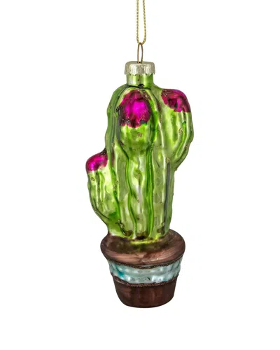 Dnu Unprofitable Northlight 4.75in Green And Pink Potted Cactus Glass Christmas Ornament