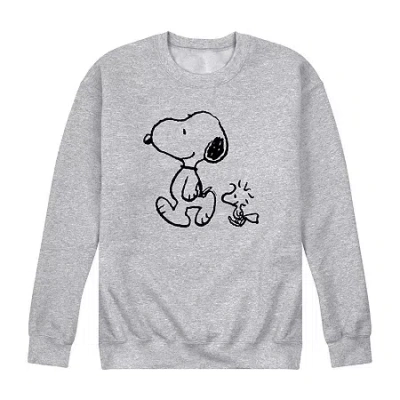 Mens Crew Neck Long Sleeve Peanuts Sweatshirt In Gray