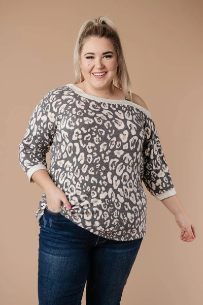 Grin & Bare It Animal Print Top In Grey/leopard Print