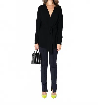 Waist Tie Slender Knit Relaxed Cardi In Black
