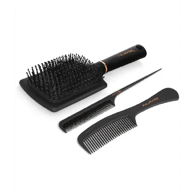 Paddle Brush & Comb Set In Black