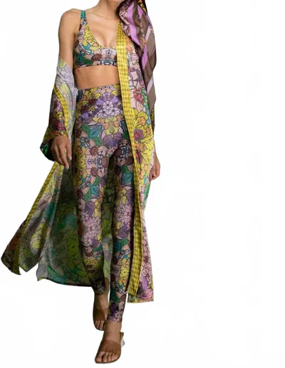Floral Satin Kimono In Golden Duchess In Multi