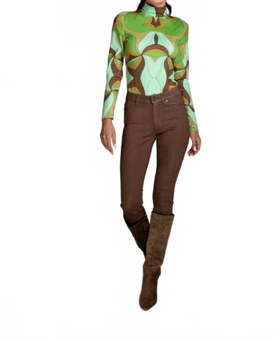Long Sleeve Turtleneck Bodysuit In Abstract Green