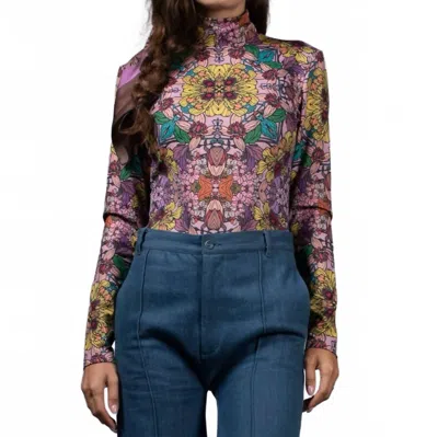 Long Sleeve Turtleneck Bodysuit In Golden Garden In Multi