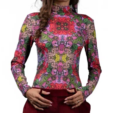 Long Sleeve Turtleneck Bodysuit In Red Garden In Multi