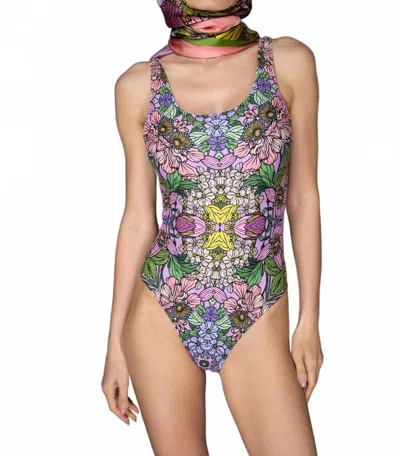 Scoop Neck One-piece Swimsuit In Floral Pastel Lilac In Multi