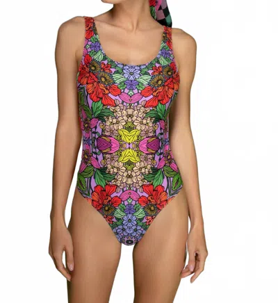 Scoop Neck One-piece Swimsuit In Red Garden In Multi