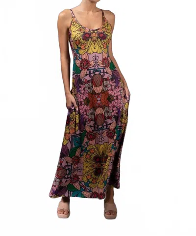Scoopneck Slip Maxi Dress In Golden Garden In Multi