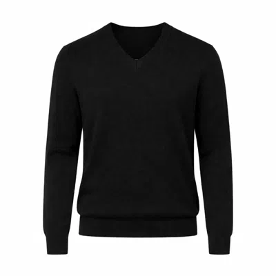 Black V-neck Merino Wool Men's Sweater – Italian Yarn