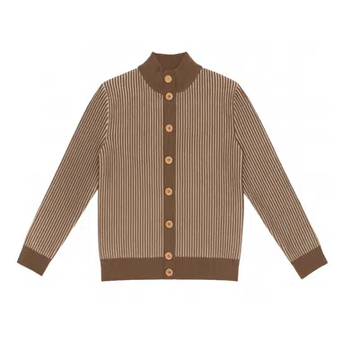 Men's Brown Men's Striped Milano-stitch Cardigan – Premium Italian Wool Blend
