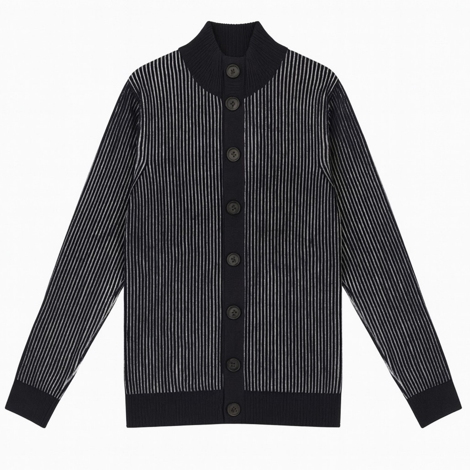 Men's Blue Men's Striped Rib Knit Cardigan – Premium Italian Yarn