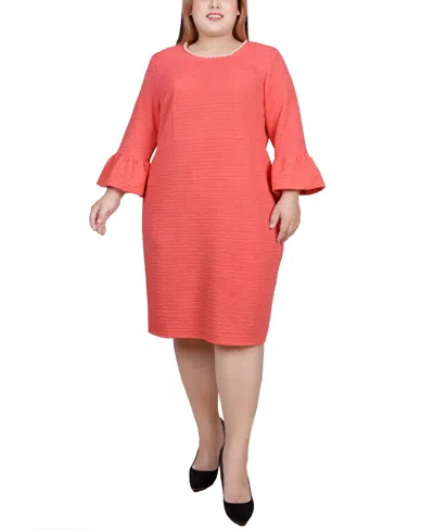 Plus Size 3/4 Length Imitation-pearl Detail Dress In Coral