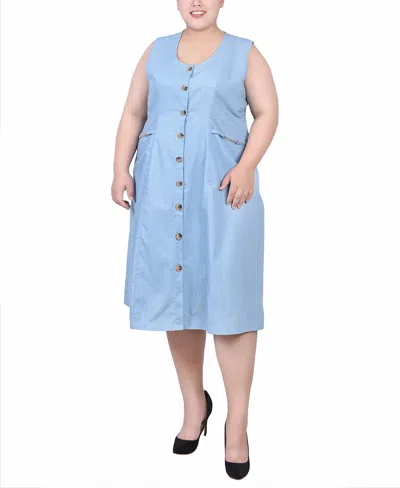 Plus Size Sleeveless Chambray Dress With Hardware In Light Denim