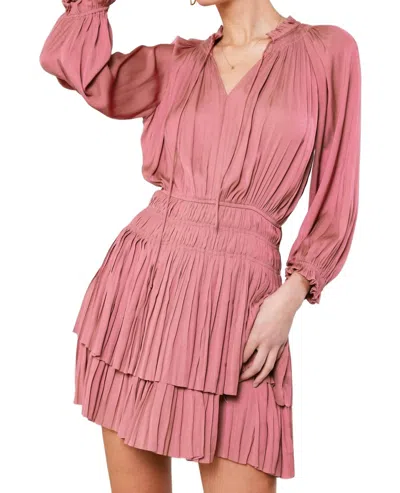 Saffira Shirt Dress With Pleated Tie In Burnt Umber In Red