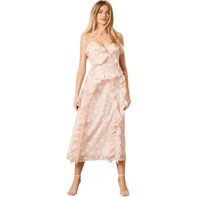 Ruffle Front V-neck Strappy Midi Dress In Pink