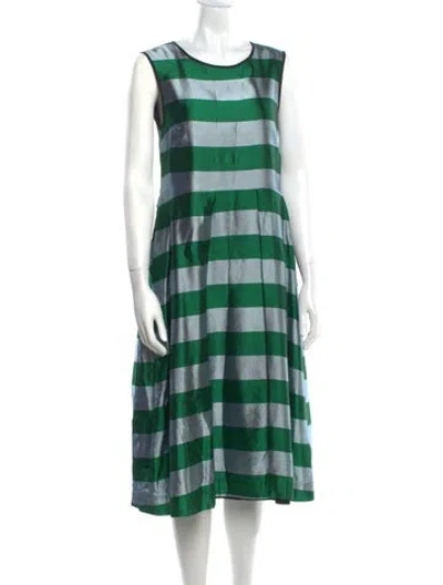 Pre-owned Striped Midi Length Dress In Green