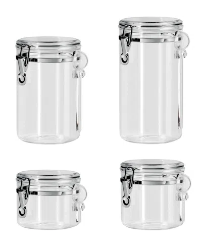 Clear Clamp 4 Piece Canisters With Scoops Set