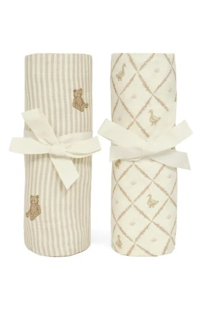 Assorted 2-pack Organic Cotton Muslin Swaddle Blankets In Eggshell