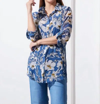Drawn Floral Blouse In Blue
