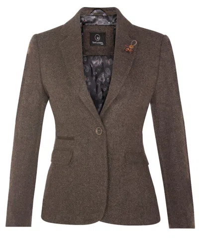 Womens Tweed 1920s Herringbone Brown Blazer