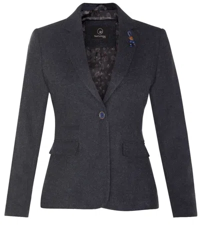 Womens Tweed 1920s Herringbone Navy Blazer In Blue