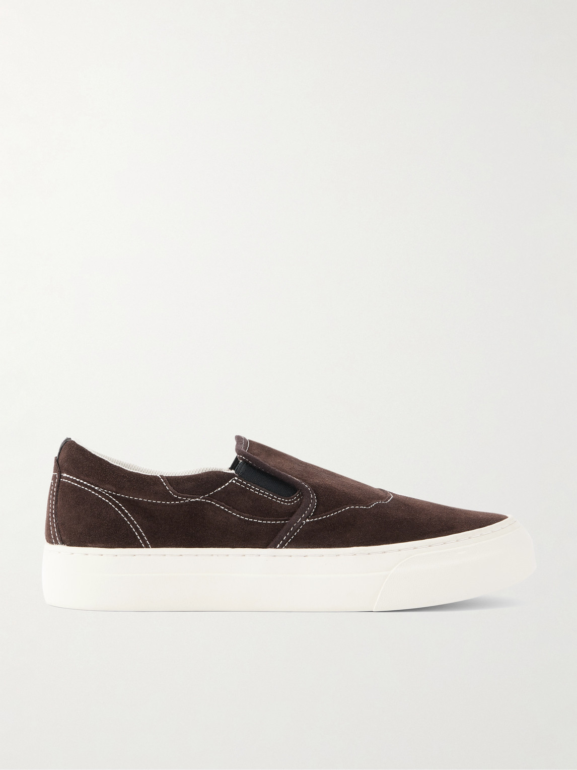Lister Canvas-trimmed Suede Slip-on Sneakers In Burgundy