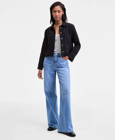 Women's Cotton Gauze Cropped Jacket, Exclusively At Macy's In Black