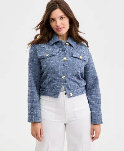 Women's Woven Solid Cropped Tweed Jacket, Macy's Exclusive In Blue