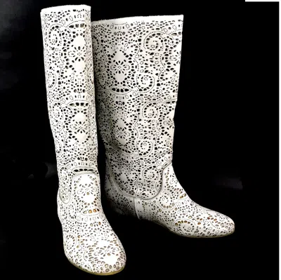 Pre-owned ?? Women's White Soft Leather Fashion Summer Boots