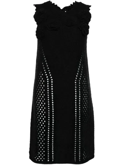 Floral-embellished Knitted Dress In Black