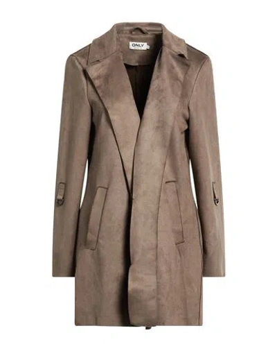 Our Story Woman Overcoat & Trench Coat Military Green Size L Recycled Polyester, Polyester, Ela In Brown