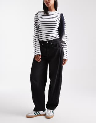 Chara High Waist Barrel Leg Panel Jeans In Black