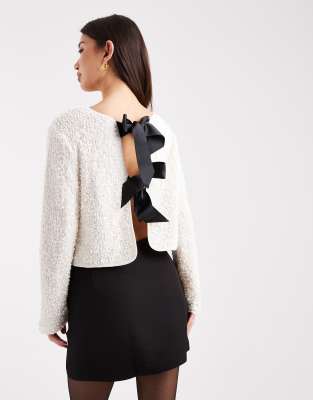 Tie Front Long Sleeve Top With Embroidery Details In White
