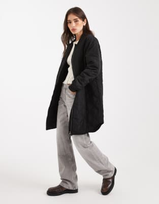 Tie Detail Funnel Neck Quilted Jacket In Black