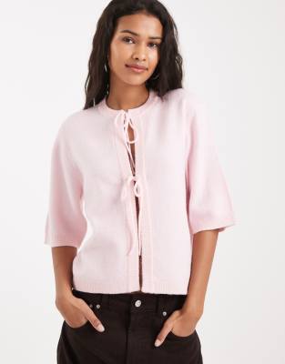Tie Front Short Sleeve Boxy Knit Top In Multi