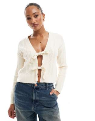 Cable Knit Short Sleeve Polo With Stripe Detail In Neutral