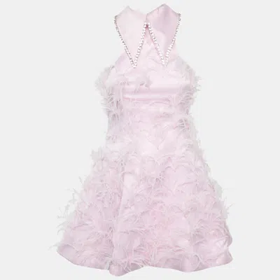 Pre-owned Pink Satin Feather Trim The Grace Mini Dress M