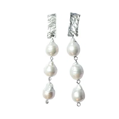 Women's White / Silver Rain Rain Rain Drops Hammered Silver And Baroque Pearl Drops In Multi