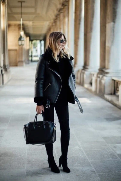 Pre-owned Women's Black Raf Aviator Jacket Fur Shearling Real Leather Bomber Jacket Coat