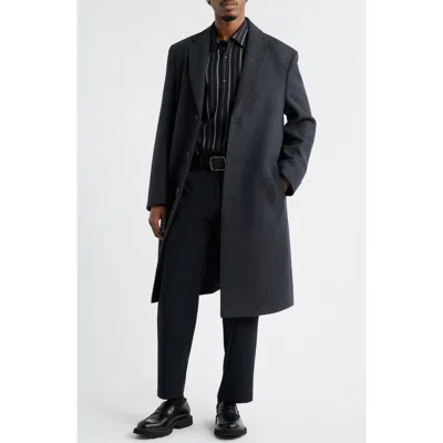 Wool Blend Melton Overcoat In Black