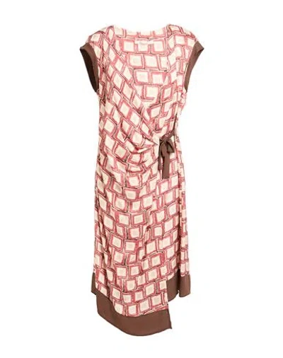Woman Midi Dress Brick Size 12 Viscose In Multi