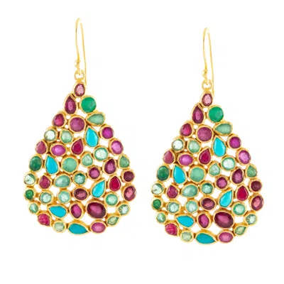 Women's Gold Mosaic Jali Drops - Rubies, Emeralds, Arizona Turquoise In Multi