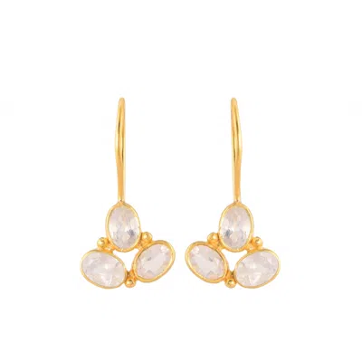 Women's Gold / White Lotus Earrings - Rainbow Moonstone