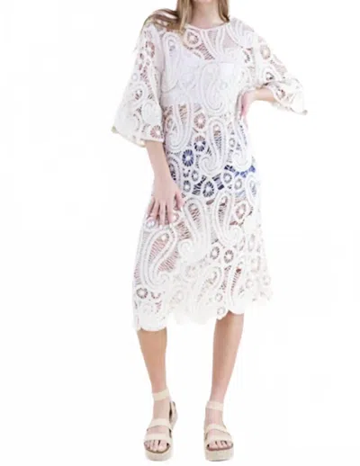 Cotton Boho Paisley Boat Neck Crochet Midi Dress In Beige In White
