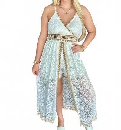 Geo Floral Lace Crochet Accents Maxi Dress In White