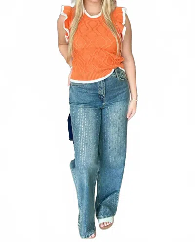 Square Rhinestone Lines Embellished High Rise Wide Leg Jeans Plus In Denim Blue
