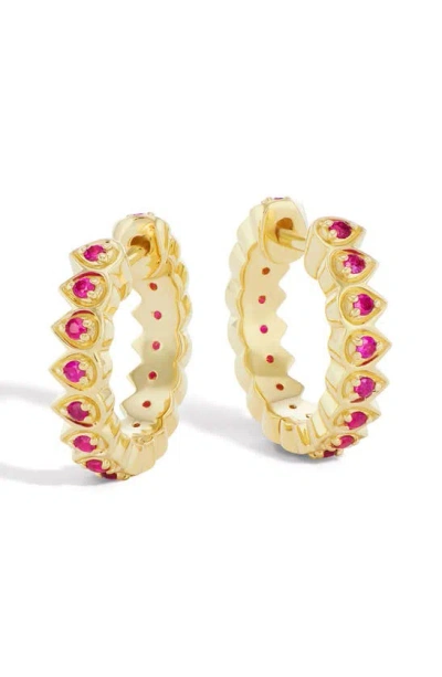 Women's Mandala Petal 18k Yellow Gold & Pink Sapphire Huggie Hoop Earrings