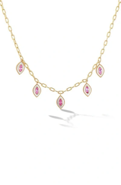 Women's Marquise 18k Yellow Gold, Mother-of-pearl & Pink Sapphire Eye Charm Necklace