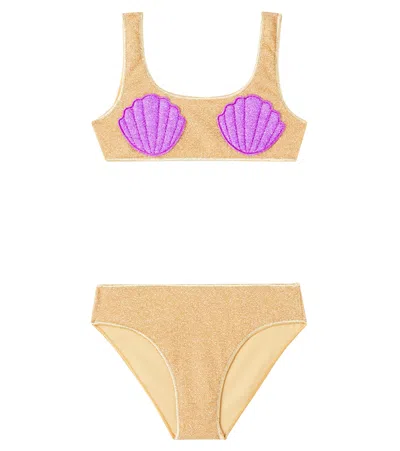 Oséree Kids Osemini Lumière Ruffled Bikini In Gold
