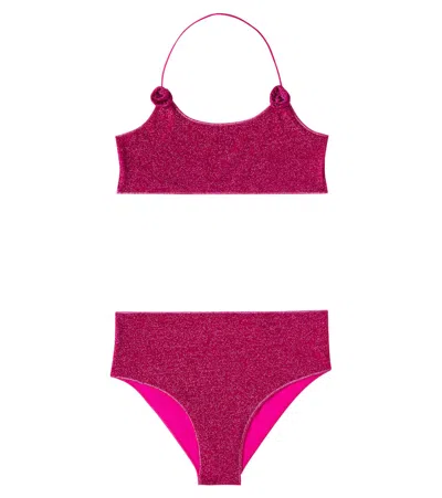 Oséree Kids Lumière Lamé Bikini In Fuxia Lurex